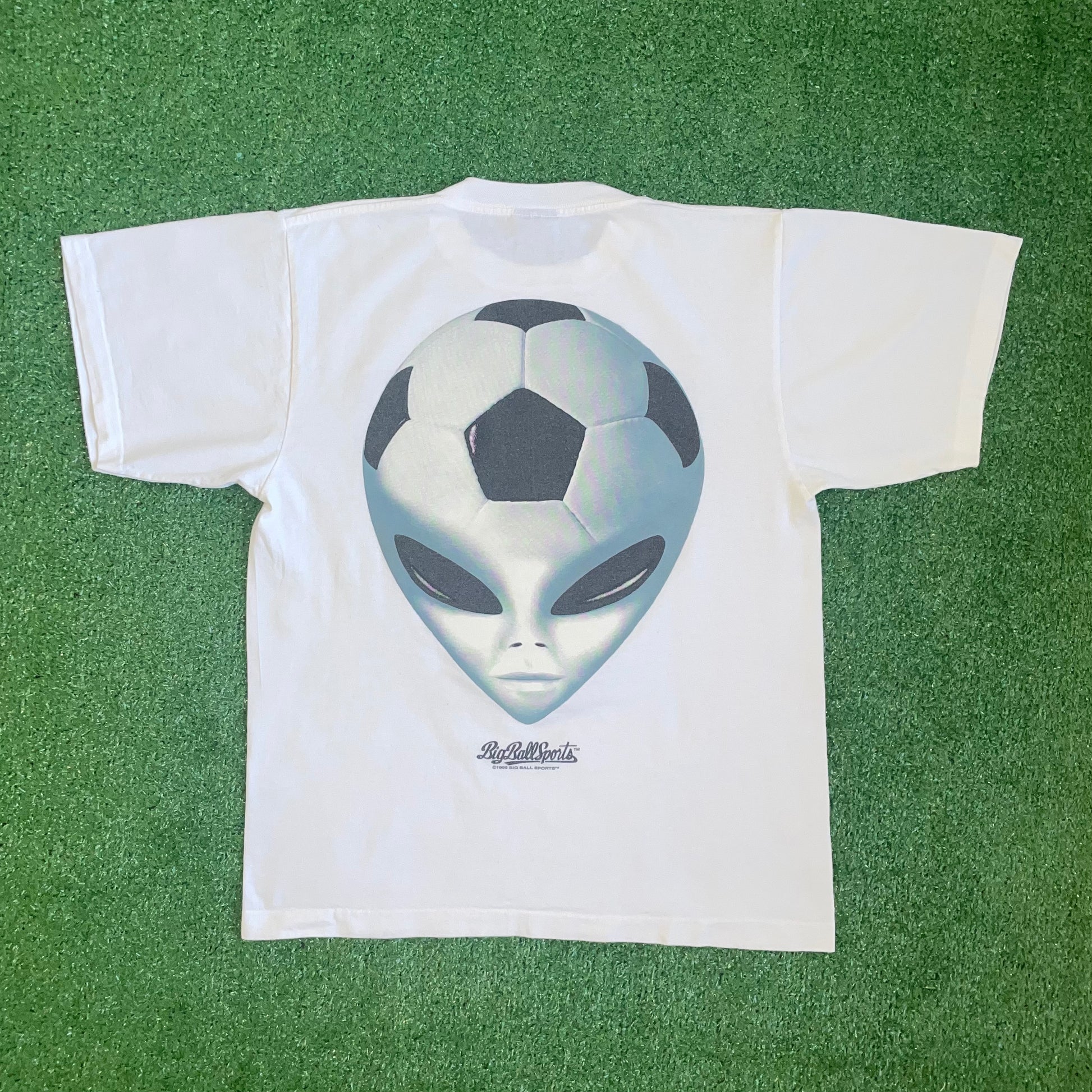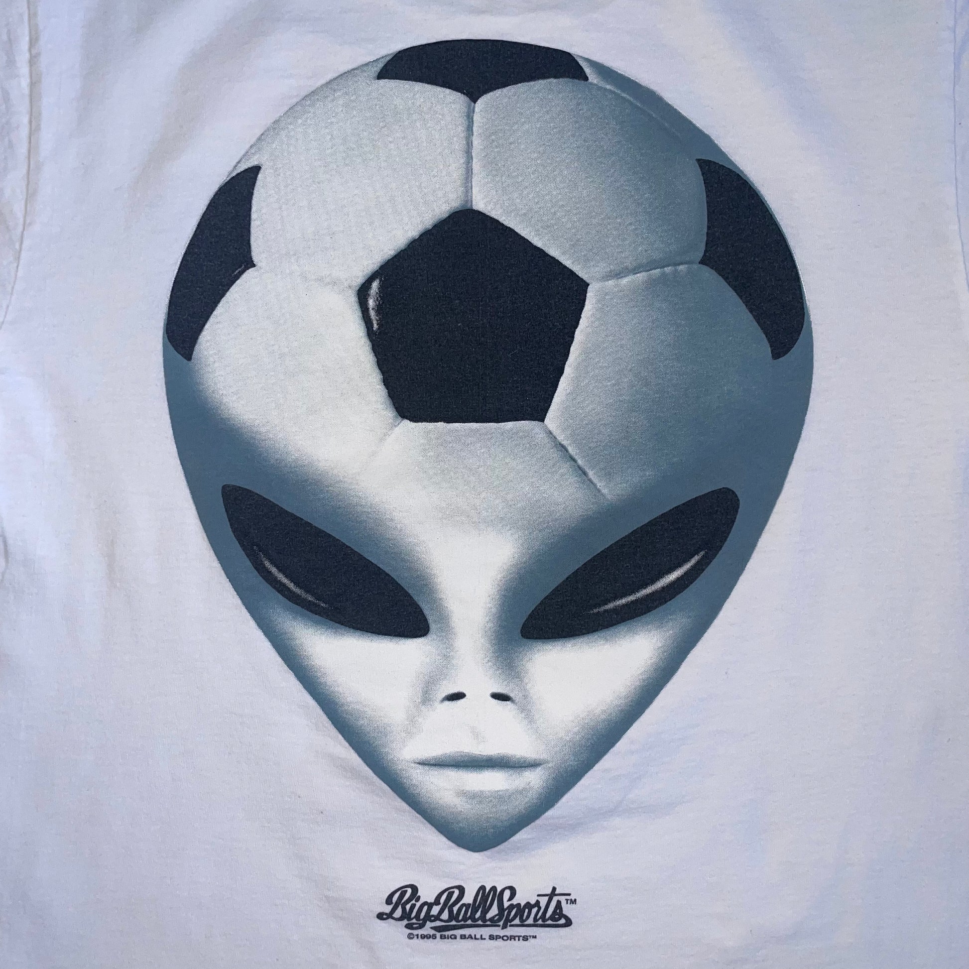 Vintage Big Ball Sports t-shirt with Alien soccer back graphic from 1995.