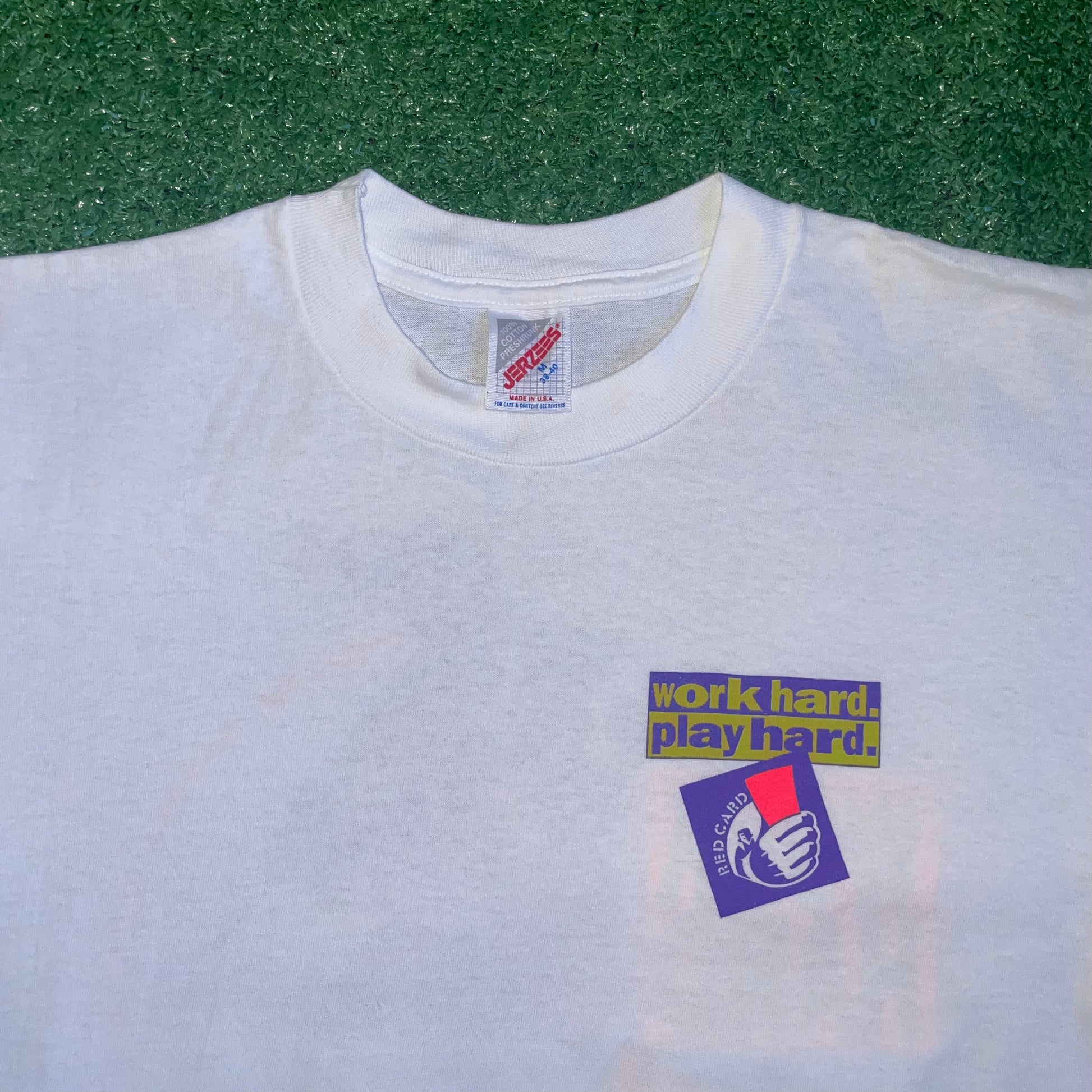 Red Card! Not sure if this was the t-shirt brand or not but this was printed on a classic Jerzees tee with back imagery of a USWNT player from the 1991 Womens World Cup qualification. I'm not sure who the player is but I'm trying to find out!